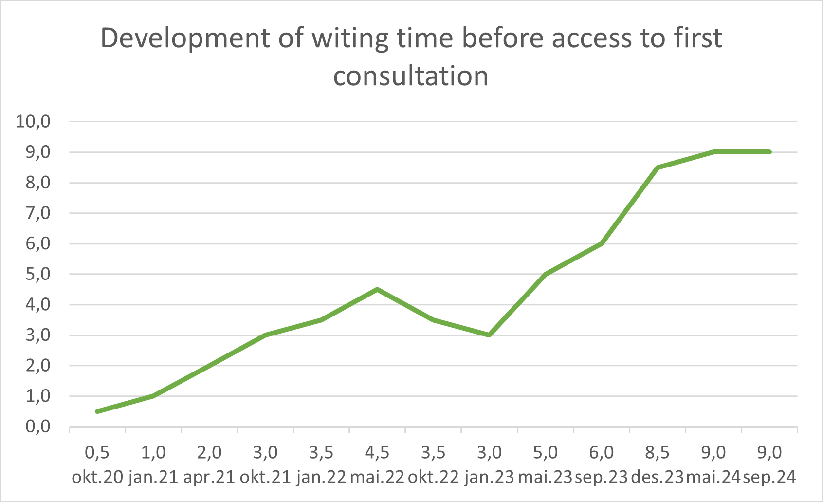 Ventelister og tider har blitt lengre på grunn av økt etterspørsel. Til dels har vi møtt økt etterspørsel ved å utvide staben. Stabil finansiering kombinert med midlertidig redusert kapasitet det siste året har hindret videre økning i inntaket. Vi håper at personalkapasiteten vil øke neste år, for å forhindre ytterligere forsinkelser, og kanskje til og med forkorte ventetidene.